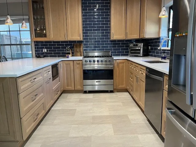 Premium cabinets, countertops, and flooring, with trusted installers we recommend.